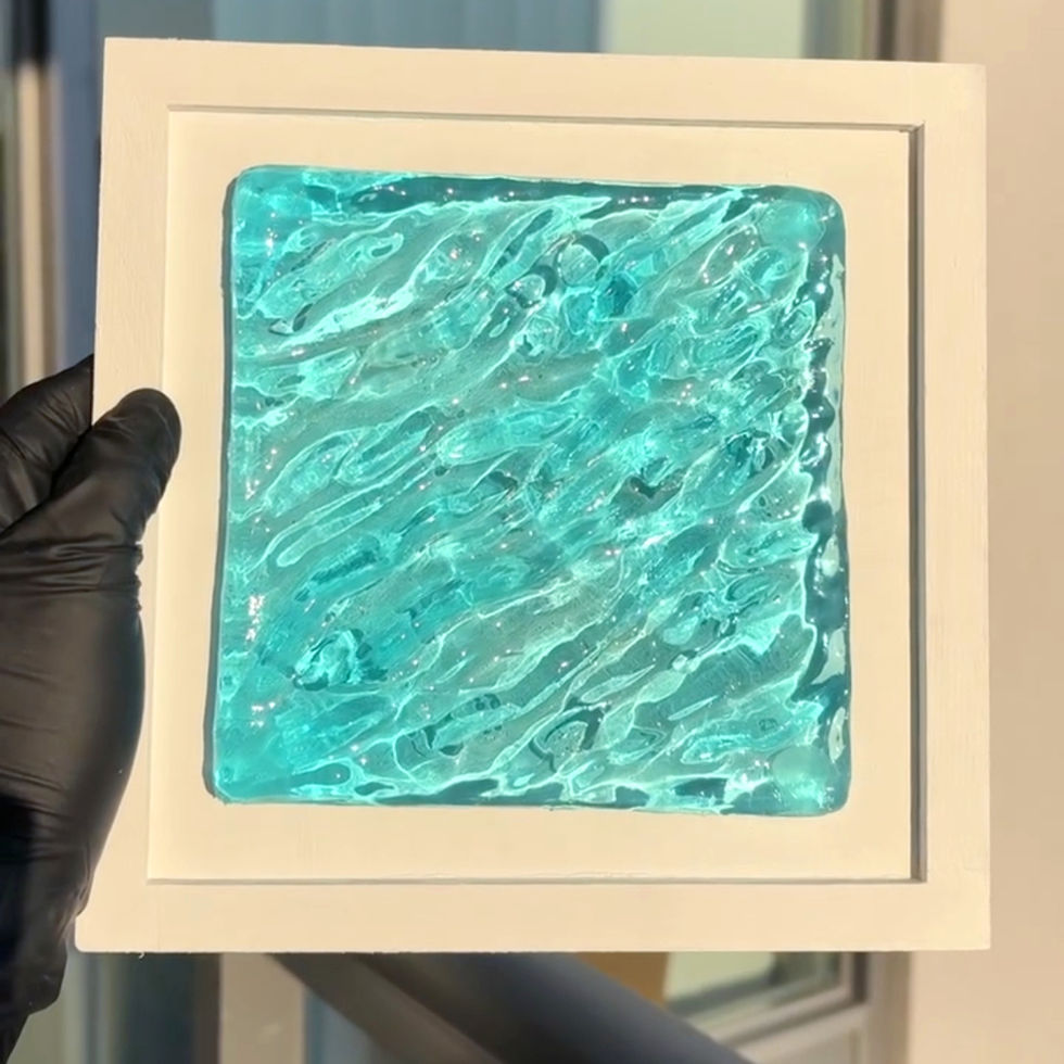 Tidal Garden captures the beauty of the sea in motion: a turquoise resin artwork filled with flowing water-ripple waves and a high-gloss finish that shimmers like sunlight on water. Set against a crisp white background, this piece brings coastal calm to any space. Comes with a complimentary mini easel for easy display.